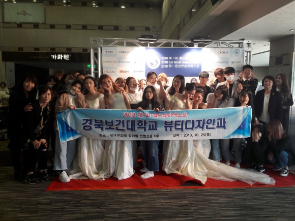 | 경북보건대학교(총장 이은직) 뷰티디자인과는 지난 10월 25일 경기도 과천 레츠런파크 러키빌 컨벤션홀에서 개최된 ‘2018 제1회 월드뷰티 엑스포 세계미용 경연대회’에서 참가한 재학생 32명 전원 상을 수상했다.