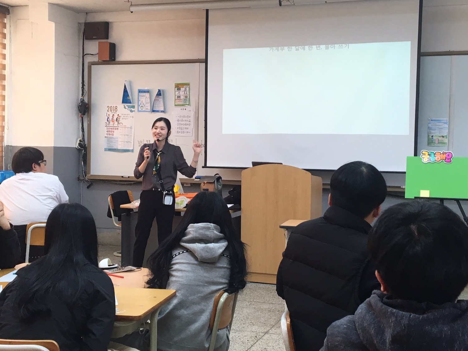 윤성애 강사의 진행으로 꿈과 도전에 대하여, 다가오는 6차산업을 대비하는 자세, 100세시대의 재무설계법, 아르바이트와 4대 보험, 통장관리법, 합리적 소비방법, 신용과 신용카드, 사회초년생을 노리는 대출과 사기 등 다양한 주제를 게임형식으로 진행하였으며, 학생들의 호응도가 높았다.