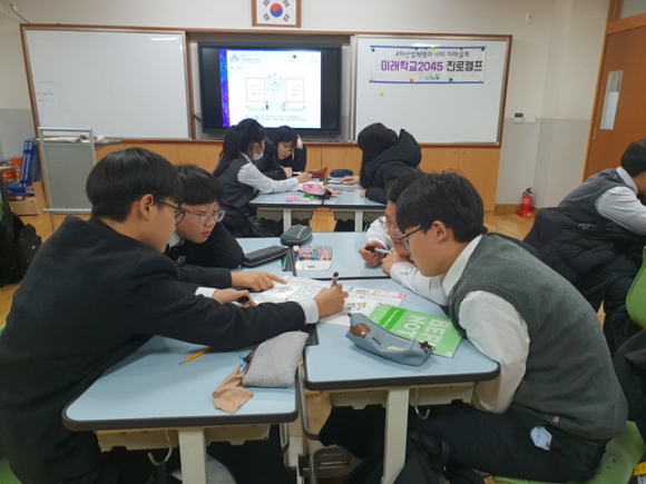 11월 9일에는 ‘미래학교 진로캠프’를 개최하여 급변하는 미래사회를 이해하고 다양한 미래기술이 우리 실생활을 어떻게 변화시킬지 상상하여 새로운 종류의 직업이나 사업을 만드는 창직 로드맵 활동을 하였다. 이를 통해 직업이 변화하는 트렌드를 인식하고 새로 생겨날 미래직업을 상상하는 역량을 기르며 주도적으로 미래사회의 인재가 되기 위한 계획을 세워보는 시간을 가졌다.