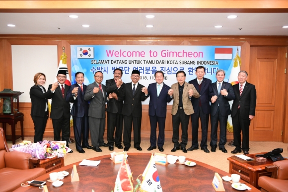 | 김천시(시장 김충섭)와 국제자매도시인 인도네시아 수방시 ‘아띵 루스나띰’시장 권한대행을 비롯한 ‘베니 유디요노’수방시의회 의장 등 수방시 관계자 6명이 지난 11월 12일 김천을 방문했다.