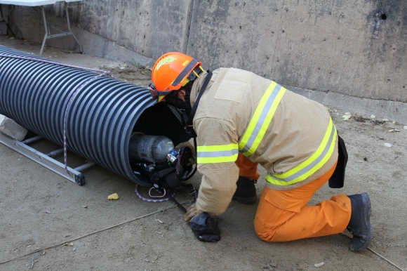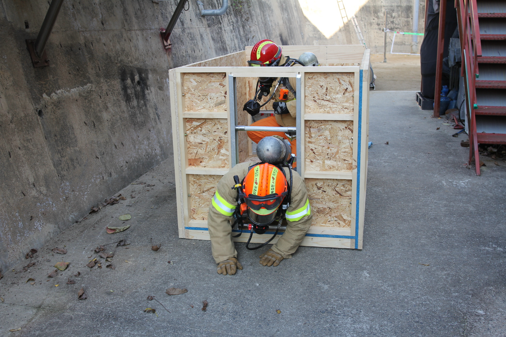 더욱이, 이번 훈련은 자체 제작된 원통터널, 밀폐구역 등 장애물 극복 구간을 활용하여 진행되었으며, 주요 내용으로 원통터널 및 협소공간 통과, 밀폐지역 내 공기호흡기 용기 교체 등 건축물 붕괴 시 인명구조 장비조작‧숙달 훈련 등이다.
