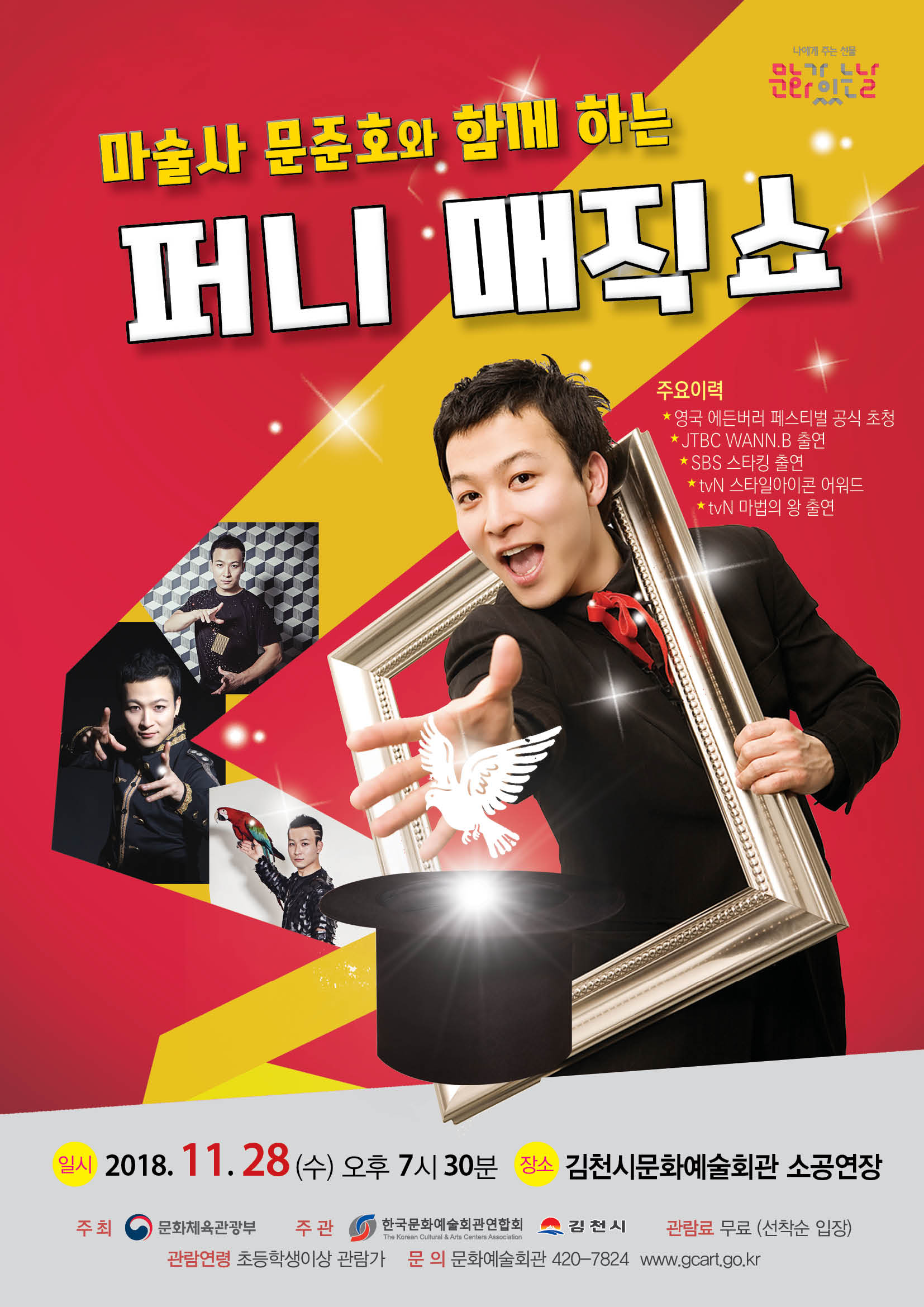 이 공연은 문화체육관광부가 주최하고 한국문화예술회관연합회와 김천시가 주관하여 국비를 지원 받아 진행하는 사업으로 이번 11월 공연은 한국인 마술사 최초로 영국 에든버러 축제에 공식 초청된 마술사 ‘문준호’가 출연한다.