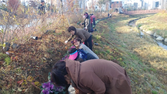 | 율곡동(동장 신장호)은 11월 15일부터 16일 양일간 율곡동 통장협의회(회장 조정구)와 함께 율곡동주민센터 뒤 석정천변(250m 구간)과 율곡동 산3-114일원에 조성된 꽃밭에 꽃양배추 4800본을 식재하였다.