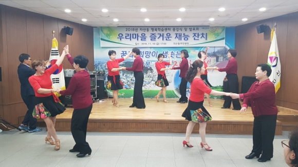 이번 발표회는 김병철 시의원, 자산동장 및 지역 기관단체장과 수강생, 주민 등 250여명이 참석한 가운데 각 프로그램별 수강생들이 그동안 배운 솜씨를 선보였다.