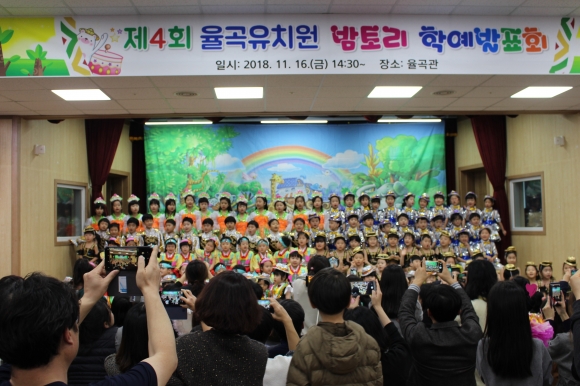 | 율곡유치원(원장 조금숙)은 11월 16일「제4회 율곡유치원 밤토리 학예발표회」를 실시하였다. 율곡유치원 밤토리 학예발표회는 1년 동안 배우고 익힌 교육활동을 바탕으로 유아들의 자신감과 발표력을 기르고, 함께하는 표현활동을 통해 서로 협력하는 태도를 갖는 것에 목적을 두었다.