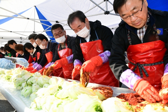 | 김충섭 김천시장은 김장담기 행사를 준비해 준 새마을회원들을 격려하고 “앞으로도 김천시새마을회에서 김장담가주기 사업 뿐만아니라 우리지역 나눔문화 확산 및 정착에 앞장 서 달라”고 했다.