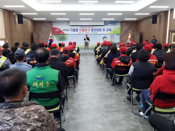20일 봉산면건강생활지원센터 강당에서 김천시의회 이진화, 이명기, 김응숙, 남용철시의원을 비롯한 기관단체장, 이장협의회, 체육회장, 새마을남녀지도자, 의용소방대원, 자율방범대원, 산불감시원, 주민 등 100여명이 참석한 가운데 2018년 가을철 산불예방교육 및 산불방지 결의대회를 가졌다.