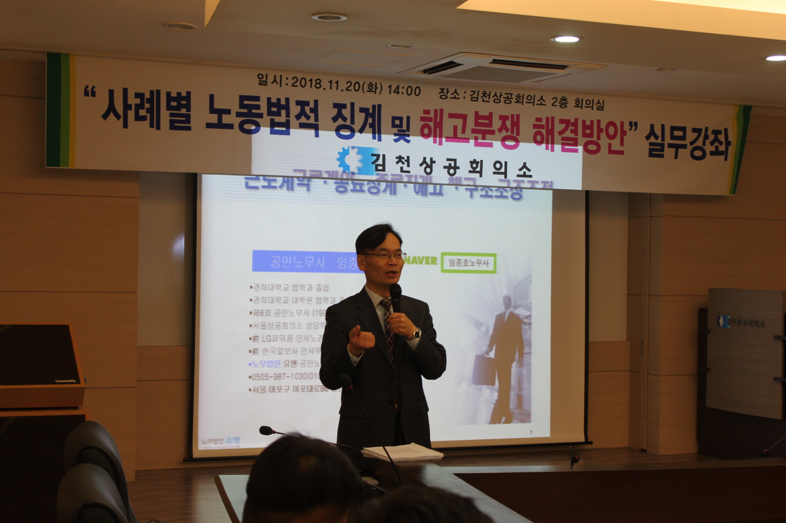 | 김천상공회의소(회장 김정호)는 지난 11월 20일 오후 2시 2층 중회의실에서 「사례별 노동법적 징계 및 해고분쟁 해결방안 실무특강」을 개최했다.