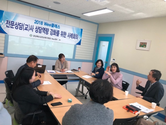 | 경상북도김천교육지원청(교육장 신정숙) Wee센터는 지난 19, 20일 양일간 김천교육지원청 3층 Wee센터에서 김천 관내 초, 중, 고등학교 Wee클래스 전문상담(교)사 및 Wee센터 전문상담인력 27명을 대상으로 2018년 Wee클래스 지원을 위한 하반기 상담 사례회의를 운영하였다.