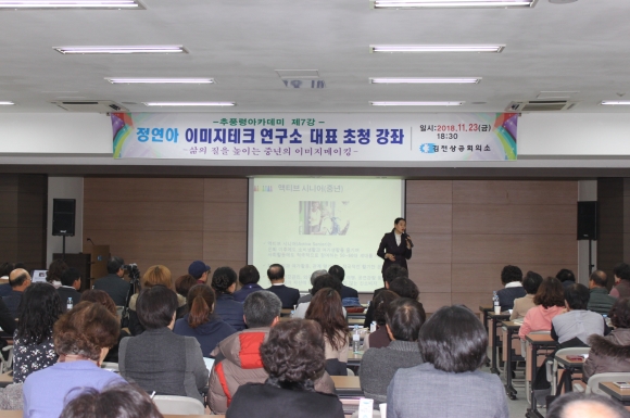 | 김천상공회의소(회장 김정호)는 지난 11월 23일 오후 6시 30분 본 회의소 4층 대회의실에서 정연아 이미지테크 연구소 대표 초청해 「삶의 질을 높이는 중년의 이미지 메이킹」이라는 주제로 일곱번째 「추풍령 아카데미」를 열었다.