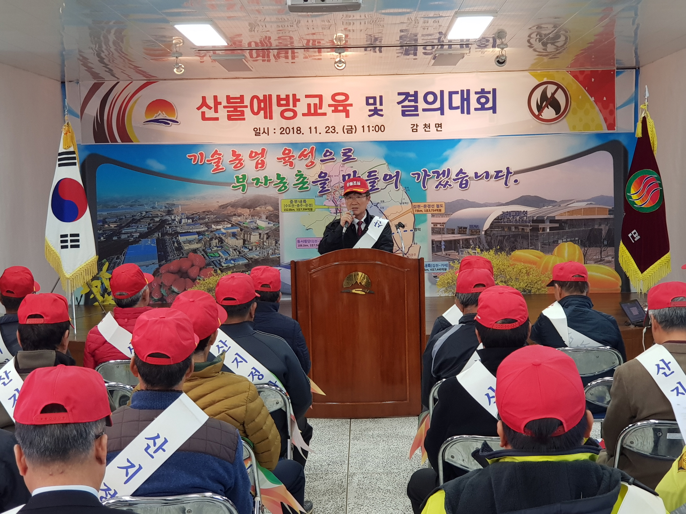 이번 결의대회는 감천면 체육회, 새마을회, 의용소방대 등 관내 기관단체 100여명이 참석하여 불법소각 행위를 예방하고 정신질환자, 노약자, 어린이 등의 취약계층에 대해 산불에 대한 경각심을 심어주기 위하여 개최되었다. 김재천 감천면장은 “무엇보다 중요한 것은 애초에 산불이 나지 않는 것”이라고 하였으며, 철저한 감시활동과 교육만이 산불 없는 감천면을 만드는 원동력이라고 강조했다.