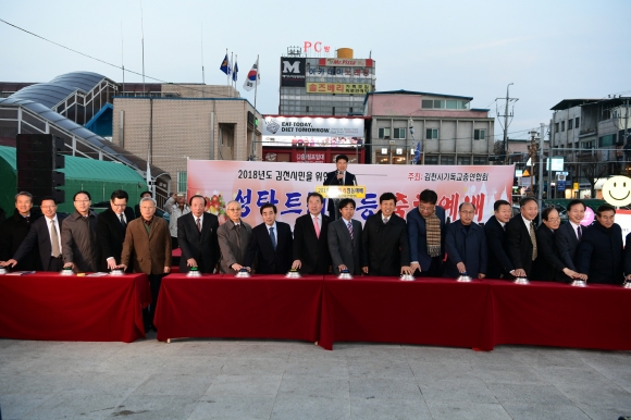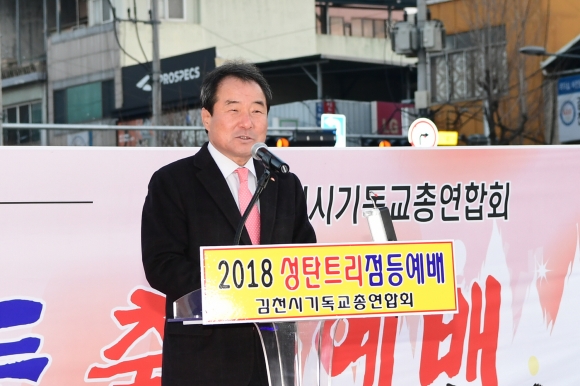 | 김충섭 김천시장은 이 날 “어둠을 환히 밝힐 성탄트리 점등식에 함께하게 되어 기쁘다”며, “이웃에게 나눠지는 온기가 따뜻한 우리 지역, 시민 모두가 행복한 김천이 되기를 바란다. 남은 무술년을 보람찬 해로 보내고, 다가오는 기해년을 희망찬 마음으로 모든 소망이 이루어지기를 바란다.” 고 말했다.