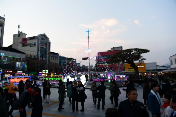 | 다가오는 성탄절을 맞이하여 추운 겨울밤의 김천을 환히 비출 성탄트리 점등식이 11월 25일 김천역 앞에서 성대하게 개최되었다.