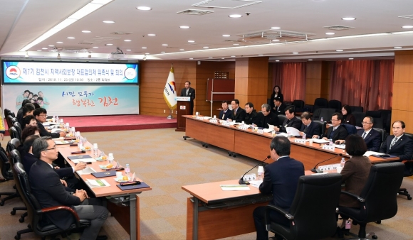 | 김천시는 지난 23일 시청 2층 회의실에서 제7기 김천시지역사회보장협의체 대표위원 위촉식 및 회의를 개최하였다.