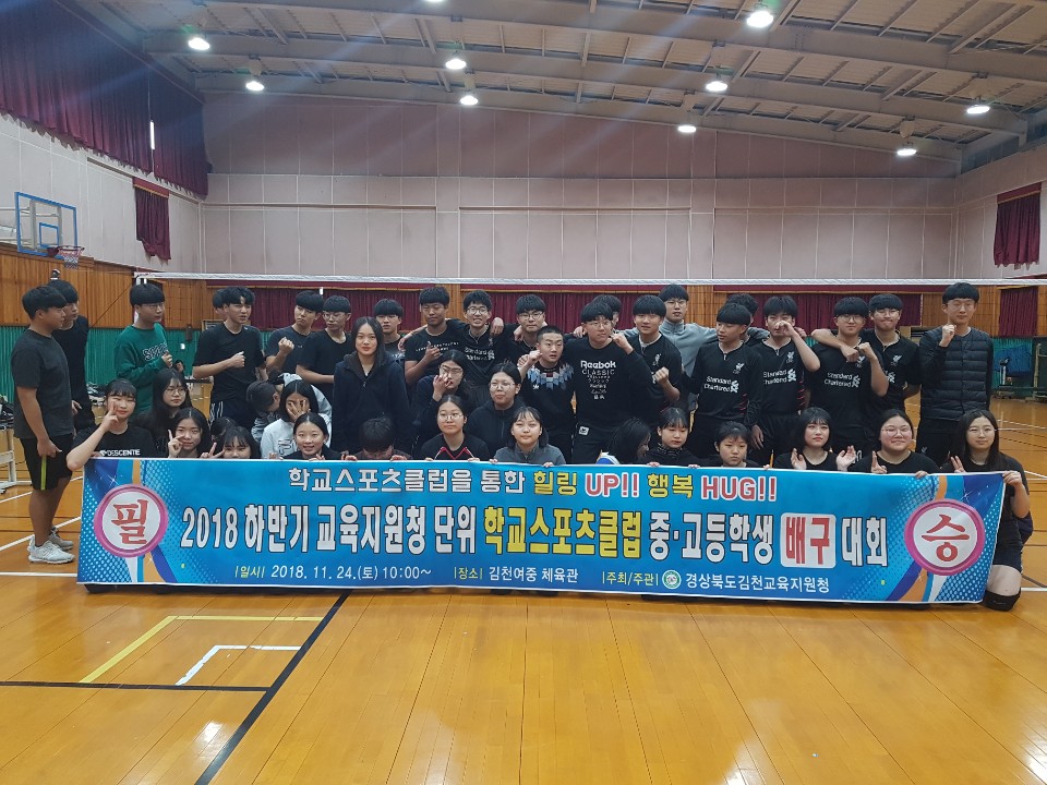 김천교육지원청 2018 하반기 학교스포츠클럽 리그대회에서 배구, 탁구, 배드민턴 3종목 30개팀 관내 초․중․고 학생 230여명이 참가하여 그동안 갈고 닦은 기량을 마음껏 발휘하였다.