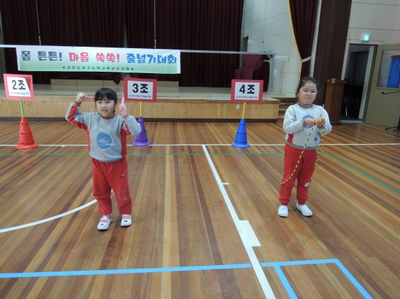 이 날 강당에서 열린 ‘몸 튼튼! 마음 쑥쑥! 줄넘기 대회’에 참가한 유아들이 그동안 연습한 줄넘기 실력을 뽐내었다. 이번 대회는 우수한 성적을 가리기보다 1학기와 비교해 더 노력하여 기록을 갱신한 유아에게 칭찬하고 성취감을 높이는 것이 목적이었다. 대회 후 시상식을 통해 자신의 전 기록보다 25회, 15회 이상 한 유아들에게 점프상과 폴짝상 수여식을 하였다. 한 유아는 “1학기때 3개 했는데 오늘은 23개 했어요.”라며 뿌듯한 얼굴로 참가한 소감을 말하였다.