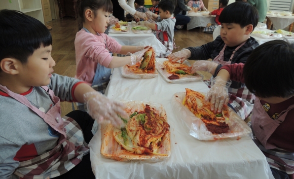 김천중앙초병설유치원 김장담그기 체험 실시