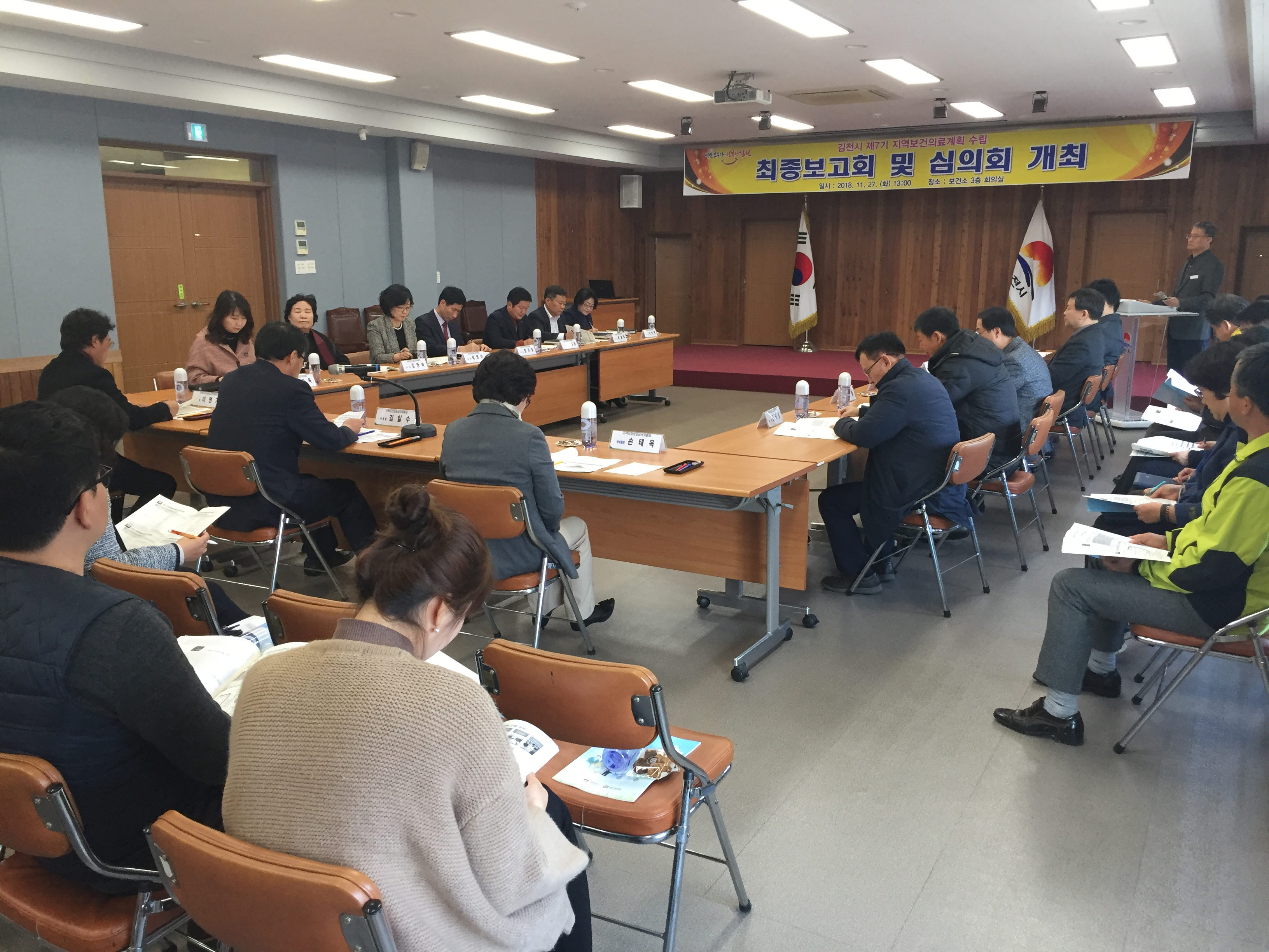 | 김천시(시장 김충섭)는 27일(화) 보건소 3층 회의실에서 지역보건의료심의 위원장인 부시장, 보건소장, 김천시의회, 김천시의사회․한의사회․약사회, 교육지원청, 관내 대학 등 각계 보건전문가와 보건소 직원으로 구성된 기획실무팀 53명이 참석한 가운데 제7기 지역보건의료계획’수립을 위한 최종보고회 및 심의회를 개최했다.