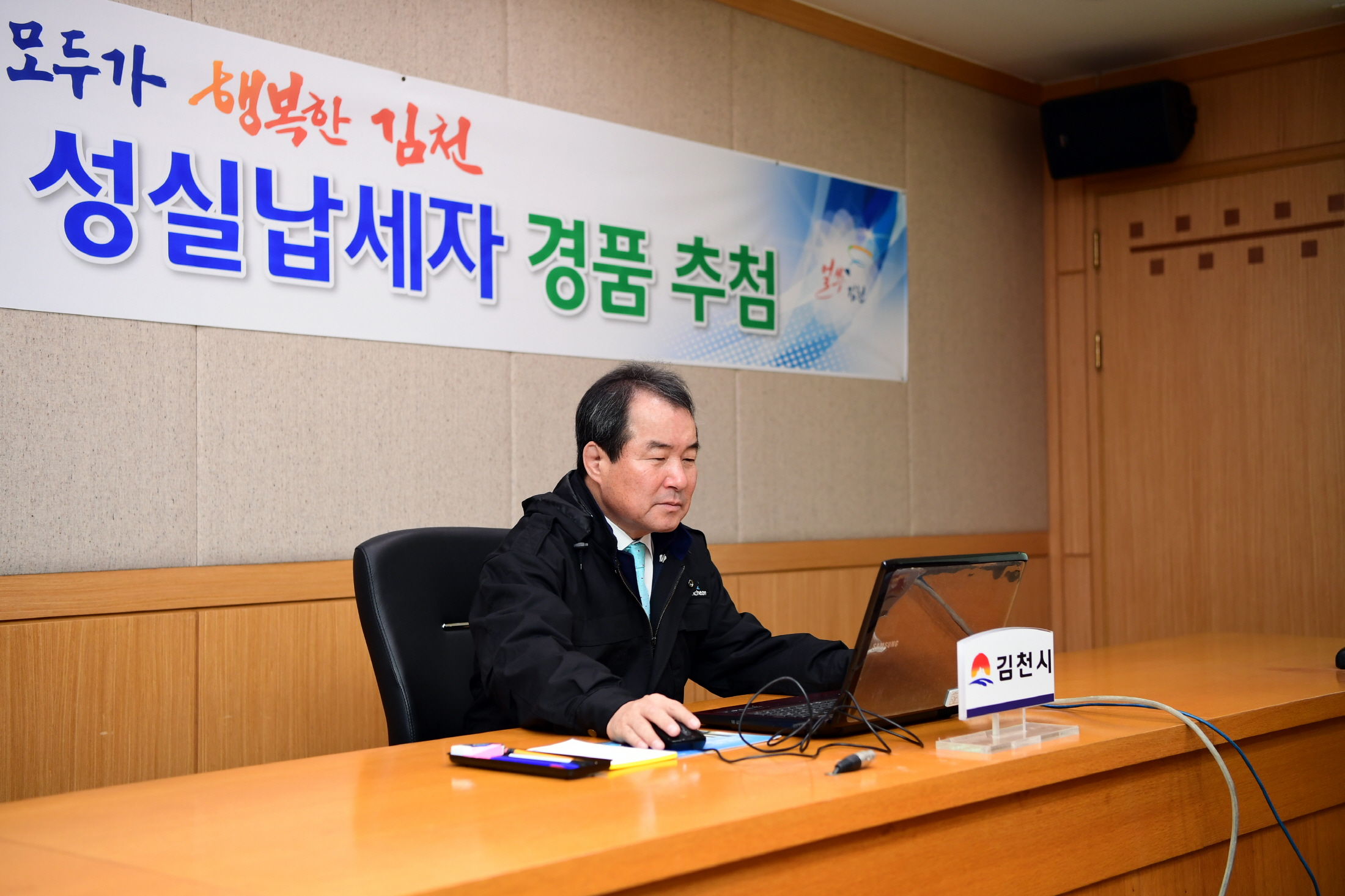 | 김천시(시장 김충섭)는 지방세 자진납부 풍토조성 및 체납액 최소화를 위해 11월28일 시청 3층 영상회의실에서 지방세를 납기 내 납부한 사람을 대상으로 김충섭 시장이 직접 성실납세자 경품추첨을 했다. 이번 추첨대상은 김천시조례에 의거 김천시에 주소 또는 사업장을 두고 지난 3년간 연 3건 이상의 지방세를 납부기한까지 전액 납부한 성실납세자 12,251명을 대상으로 지방세정보시스템을 통해 100명을 무작위 추첨했다.