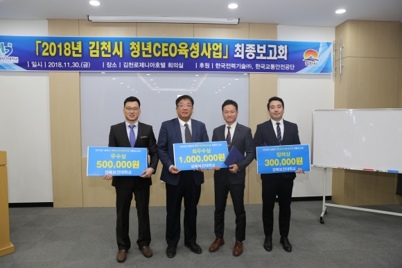 이날 행사에서는 청년CEO 10팀의 최종사업 발표와 사업평가부문 평가 시상식을 개최했으며, 장려상 형제청과 김민규 대표(김천 산지유통), 우수상 엠-트레이닝 연구소 서민화 대표(건강 관리 서비스), 최우수상 도니커스텀 강차돈 대표(맞춤형 헬멧도색)이 수상했다.
