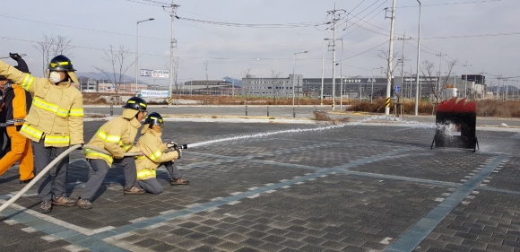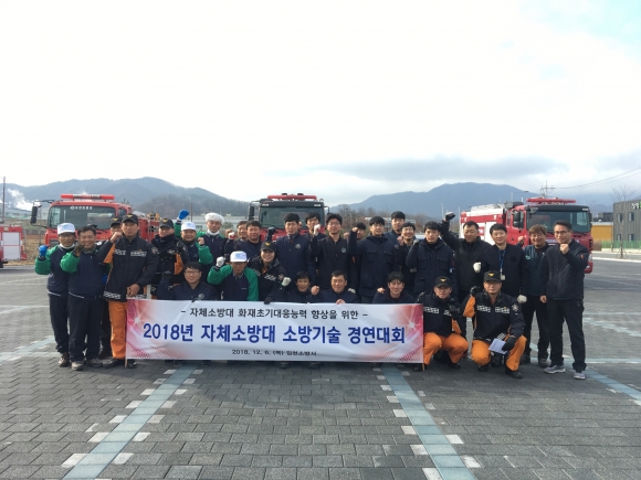 | 김천소방서(서장 이주원)는 관내 자체소방대 자율안전체계 및 겨울철 화재대응체계 확립을 위해 6일 14시부터 어모면 근린공원에서 소방공무원과 자체소방대원 40명이 참여한 가운데 소방기술경연대회를 추진하였다고 밝혔다.