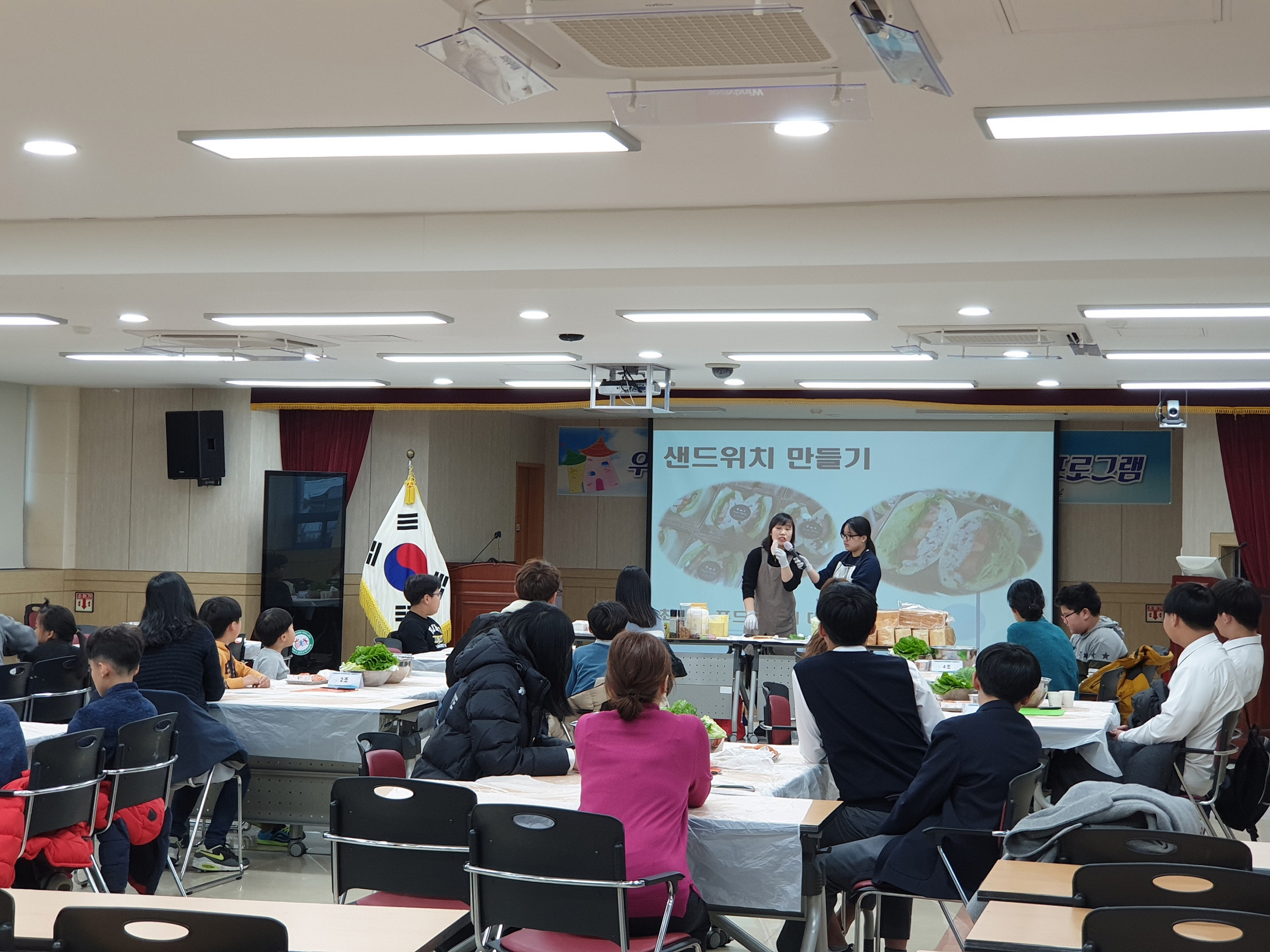 이 날 프로그램은 학생들의 일상 및 학교생활 적응력 향상을 위한 지속관리의 목적으로 마련되었으며, Wee센터 협약기관인 최화진 푸드스토리 대표를 초청하여 부모-자녀 간의 요리 체험 프로그램이 진행되었다.