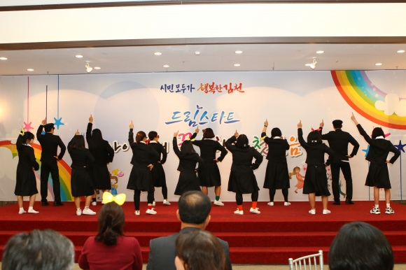 | 김천시(시장 김충섭)는 지난 6일 드림스타트 아동과 가족, 지역아동센터, 자원봉사자 5백명이 참석한 가운데 아이들의 꿈을 향한 가족들의 작은축제 2018년 드림스타트 성과보고회를 가졌다.