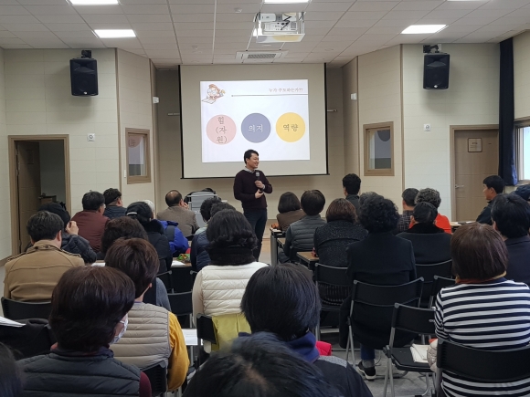 | 이어서 동의대학교 홍재봉교수는 앞으로 읍면동지역사회보장협의체가 주인의식을 가지고, 지역사회의 촘촘한 복지안전망을 만들기위해‘주민이 주인되는 지역공동체와 복지실현’을 주제로 강의하였다.