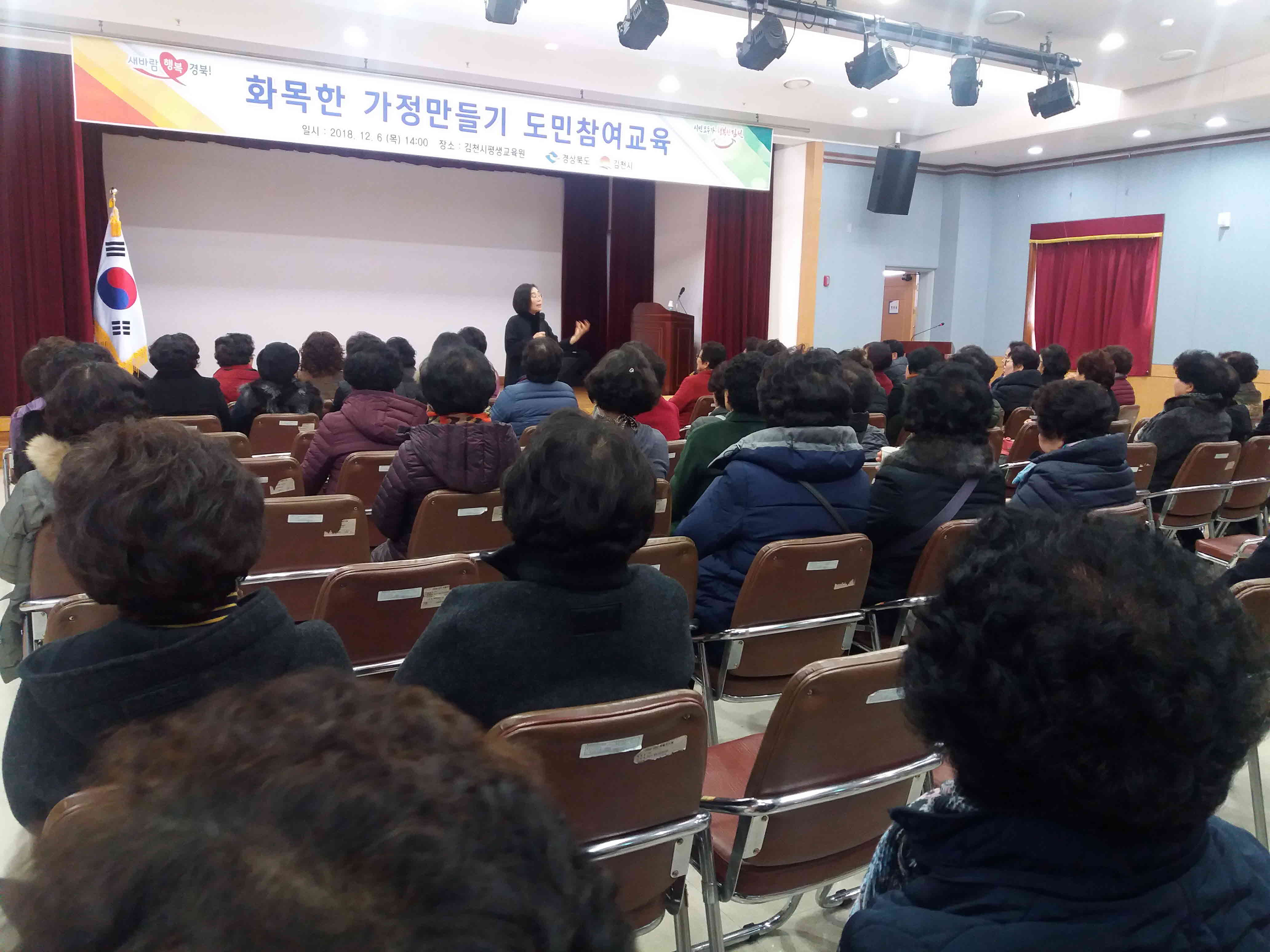 | 김천시평생교육원(원장 나혜란)에서는 지난 12월 6일 김천시평생교육원 3층 강당에서『화목한 가정만들기』라는 주제로 2018 도민참여교육을 실시했다.