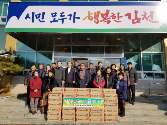 | 한국자유총연맹 김천시 개령면분회(분회장 강희수, 정금옥)은 12월 12일 개령면사무소 2층 회의실에서 회원 20여명이 참석한 가운데 2018년 마지막 정기회의를 개최하고, 연말을 맞이해 관내 어르신들의 건강한 겨울나기를 바라는 마음으로 개령면 각 마을 경로당에 요구르트 60박스를 전달하였다.