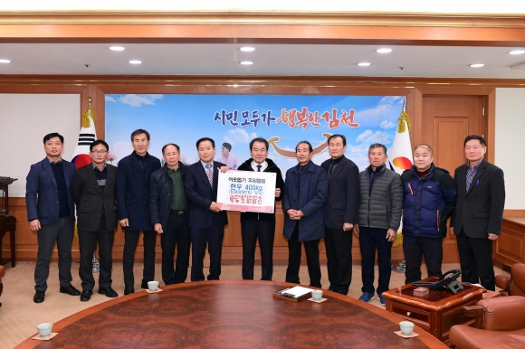 | 김천대자연한우 영농조합법인(대표이사 김흥수)는 12월 13일 김천시를 방문해 어려운 이웃에게 전달해 달라며 1천만원 상당의 소고기 400kg을 기탁했다.