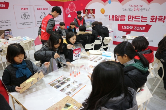 이날 행사에는 김천동부초등학교 6학년 학생 100여명이 참석했다. 학생들은 LG화학관, 라이프존, 화학실험실존, 에너지존 등 4개의 부스를 순차적으로 순회하며 체험을 하였다. 이들 부스들은 LG화학에서 학생들의 흥미 및 환경적 의미를 고려하여 선별하여 제공한 것 들이다. 학생들은 편광 저금통 만들기, 소화기 제작 실험, 정수기 실험, 해충제 만들기 등의 실습을 진행하며 화학에 대한 이해도를 높이는 시간이 됐다. 특히 이날 행사에 참여한 학생들이 졸업을 얼마 남겨 놓지 않은 6학년들이라 졸업 전 아름다운 추억을 남길 수 있었다.