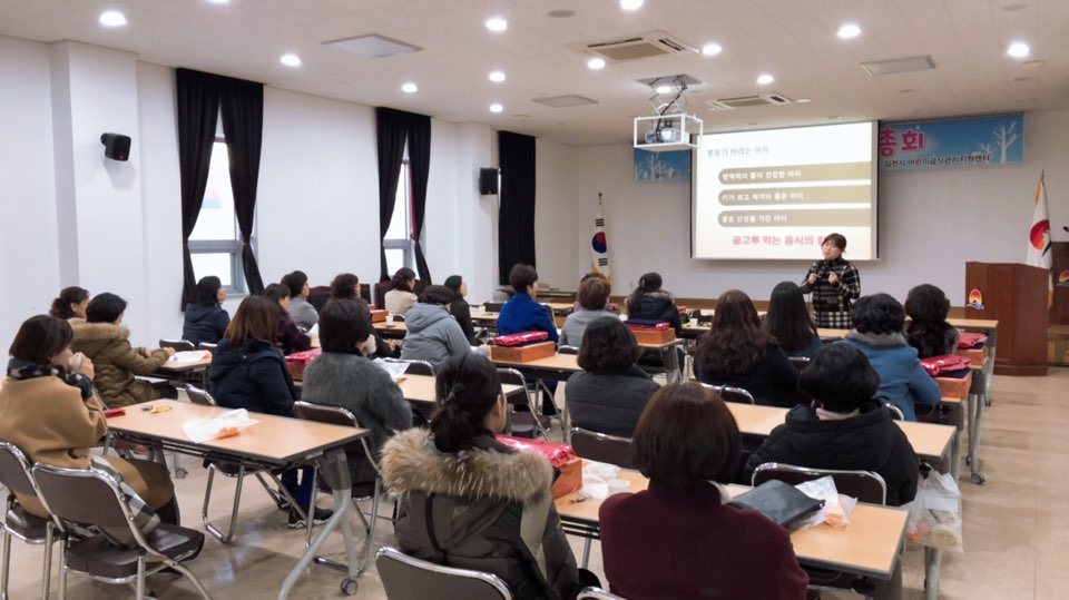 | 김천시에서 지원하고 운영하는 (사)김천시어린이급식관리지원센터(이사장 김일수 · 김천시 부시장)는 지난 18일 김천시중앙보건지소 대강당에서 어린이집, 유치원, 지역아동센터의 원장(센터장)을 대상으로 약 35명이 참석한 가운데 ‘편식 유형별 식습관 지도방법’을 주제로 집합교육을 실시했다.