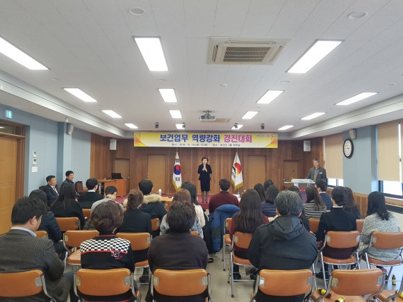 | 김천시보건소는 지난 12월 14일 보건소 8, 9급 공무원을 대상으로 한 보건업무 역량강화 경진대회를 개최하였다. 이 경진대회는 서로의 업무를 공유하고, 직원들의 PPT 작성능력 및 발표력을 향상시켜 개인의 업무 역량을 강화하는데 목적이 있다.