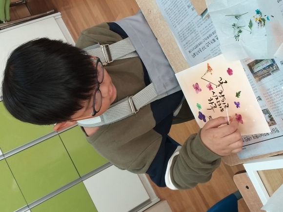 | 김천초등학교(교장 박순지)는 12월 19일 다솜이 학생들을 대상으로 압화공예교실을 운영하였다. 매달 다문화학생들을 대상으로 다솜이 사랑방을 운영하고 있는데, 12월 다솜이 사랑방에서는 자존감을 키우며 나아가 스트레스를 이겨내기 위한 활동이었다.