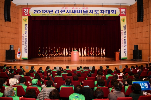 | 김천시새마을회(회장 임영식)는 지난 12월 20일 오후 1시 30분 김천시문화예술회관 대강당에서 김충섭 김천시장, 송언석 국회의원, 김세운 김천시의회의장, 시의원, 관내 기관단체장과 남․여 새마을지도자 800여명이 참석한 가운데 2018년 김천시새마을지도자대회를 개최했다.