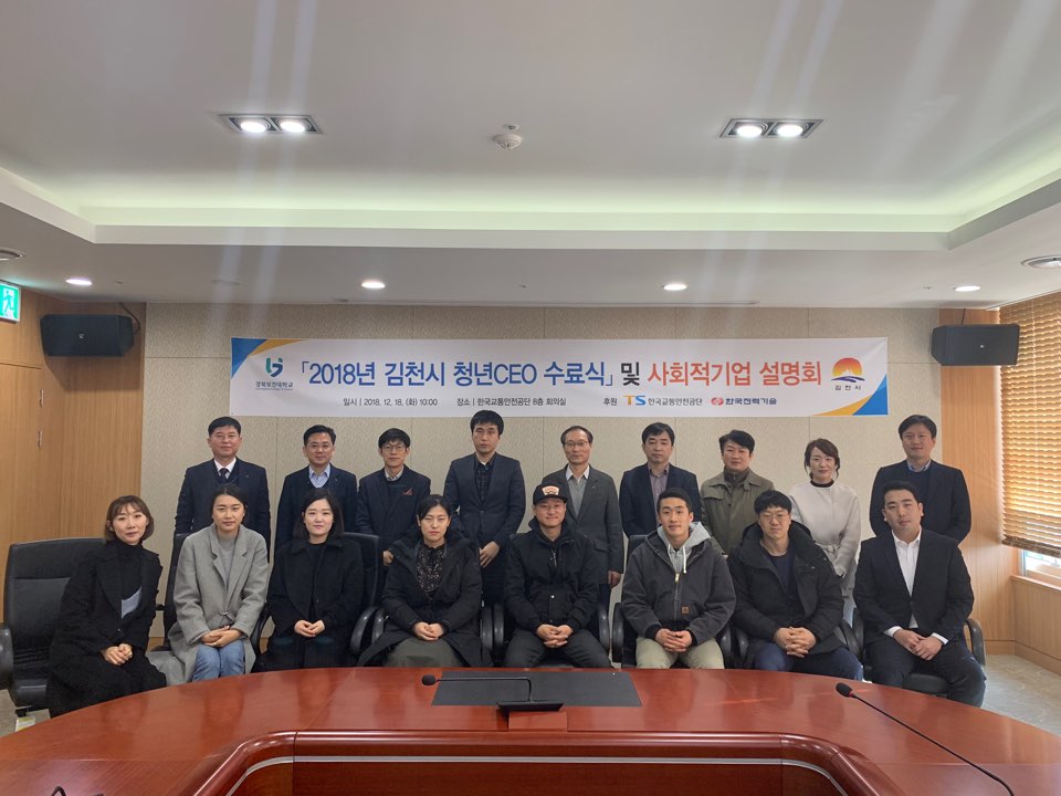 | 경북보건대학교(총장 이은직)는 한국교통안전공단과 한국전력기술에서 지원하여 ‘2018년 김천시 청년CEO육성사업 수료식 및 사회적기업 설명회’를 12월18일(화) 한국교통안전공단 8층 회의실에서 개최했다.