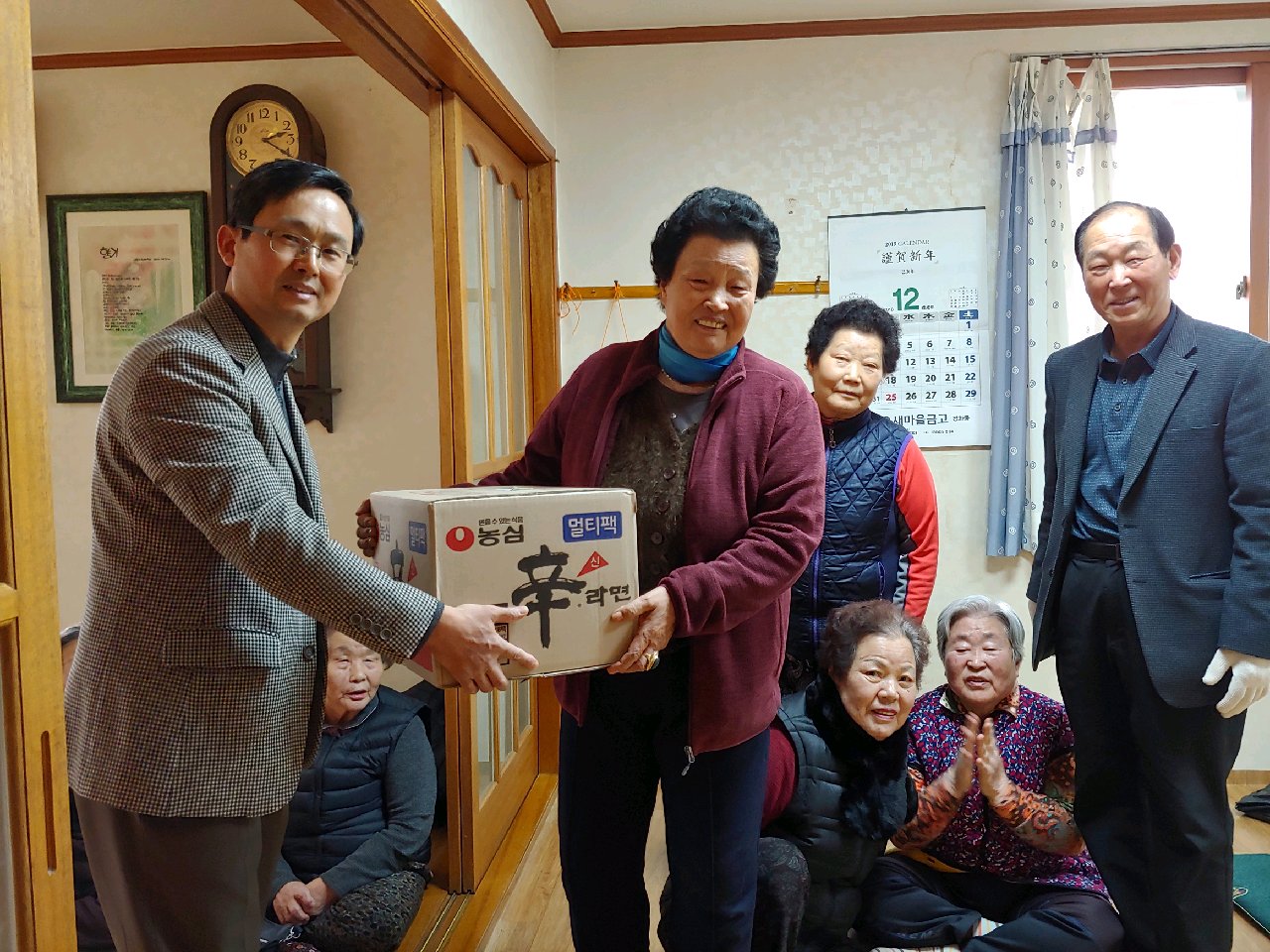 평화동에 위치한 예수재림교회는 평화동과 남산동의 ‘어르신들이 건강하고 따뜻한 겨울을 보내시라’는 마음을 담아 작년부터 경로당에 라면을 드리고 있다. 이날 함대식 목사는 어르신들에게 “옷을 따뜻하게 입고 다니시고 식사 든든하게 챙겨서 예년보다 일찍 찾아온 동장군과의 싸움에서 꼭 이기시기를 바란다.”고 전하면서 내년 겨울에도 꼭 찾아오겠다며 다음 만남을 약속하였다.