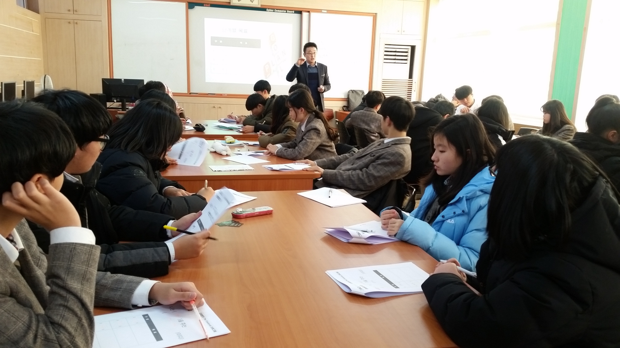 | 어모중학교(교장 서영교)는 전교생을 대상으로 지난 12월 17일부터 27일까지 2학기 꿈·끼 탐색주간을 운영하고 있다. 운영 첫째 날인 12월 17일에는 2교시~7교시까지 6시간에 걸쳐 교내 도서관에서 자기주도 학습 프로그램:㈜가치더하기컨설팅(대표: 정재한)을 실시하였다. 학생 스스로 성공에 대한 가능성을 발견하고 적극적으로 자신의 학습계획을 준비하며, 학습 진단서를 기반으로 진로 및 명확한 학습목표를 설정하며, 자기 주도 학습법의 장점을 파악하고 스스로 동기부여를 하며, 구체적인 학습 목표를 설정하고 반드시 달성하겠다는 실행력 강화를 목적으로 한 학습 프로그램이었다.