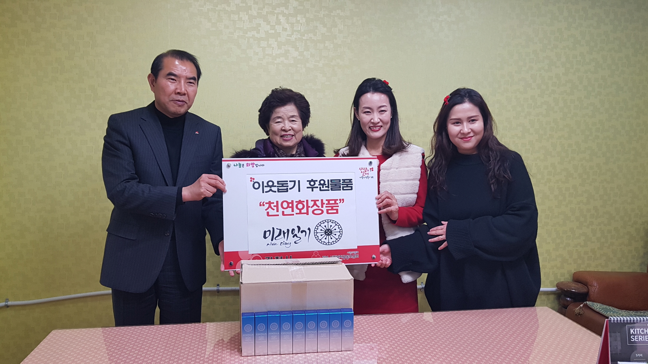 | 이화코코(대표 한진희, 브랜드명 미래일기)는 지난 24일 임마누엘영육아원을 방문해 자라나는 어린이 뿐 아니라 청소년도 함께 사용 가능한 천연화장품을 기탁했다.