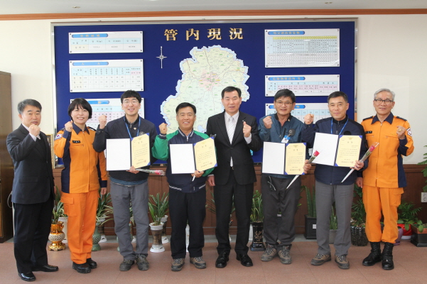 이번 시상식을 가진 자체소방대 소방기술경연대회는 지난 6일 겨울철 화재예방 및 자율안전체계 확립을 위해 4개팀이 참가하여 속도방수, 심폐소생술, 소방호스 전개 및 회수를 경연하였으며, 코오롱인더스트리 김천2공장이 최우수로 선정되었다.
