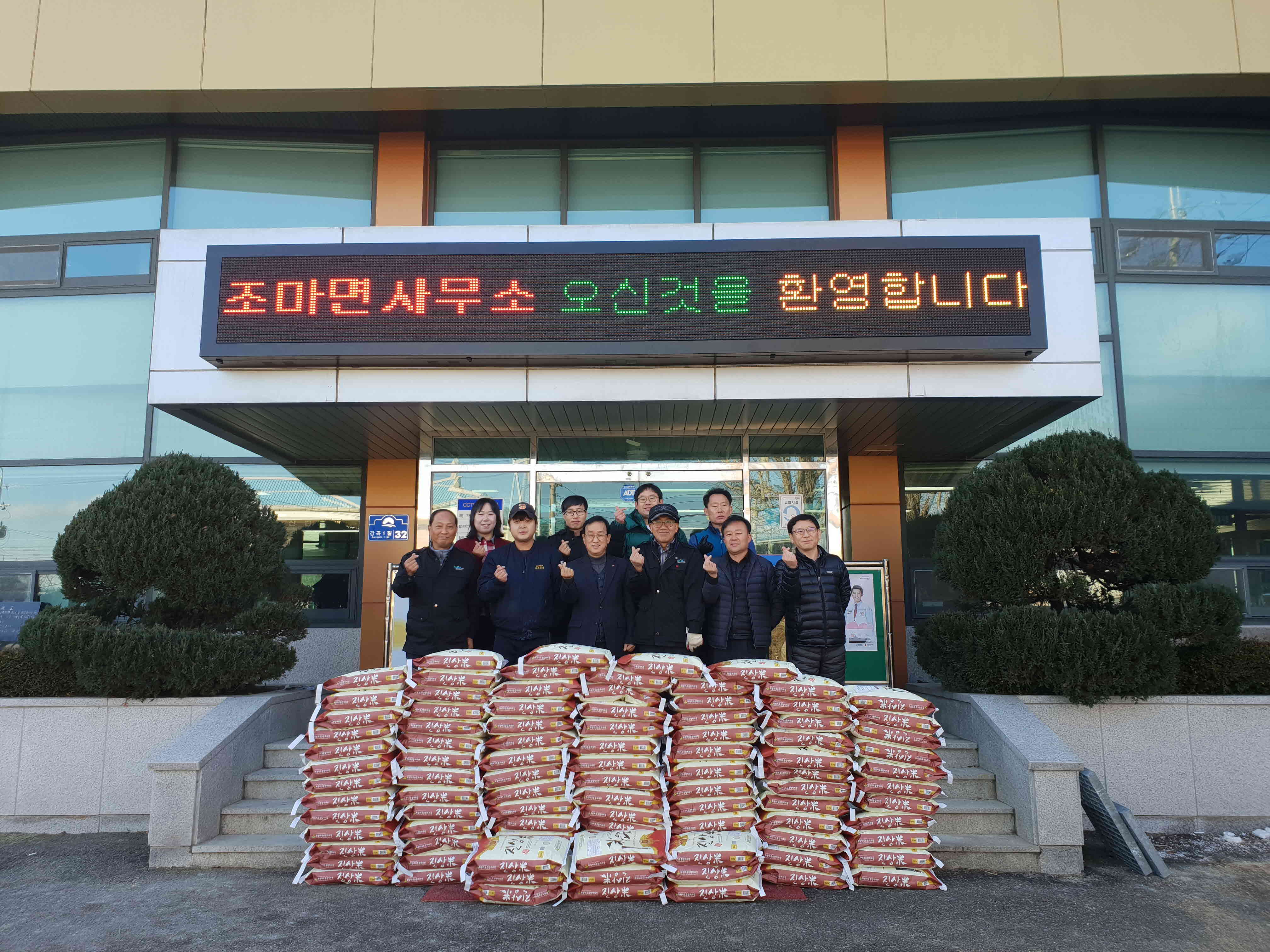 매년 어려운 이웃을 위해 사랑의 손길을 전하는 강촌축산(대표: 전재연)은 작은 정성이 조마면에 거주하는 생활이 어려운 이웃에게 도움이 되었으면 하는 마음이라며 “백미 기탁” 의사를 조마면장에게 전하였다.