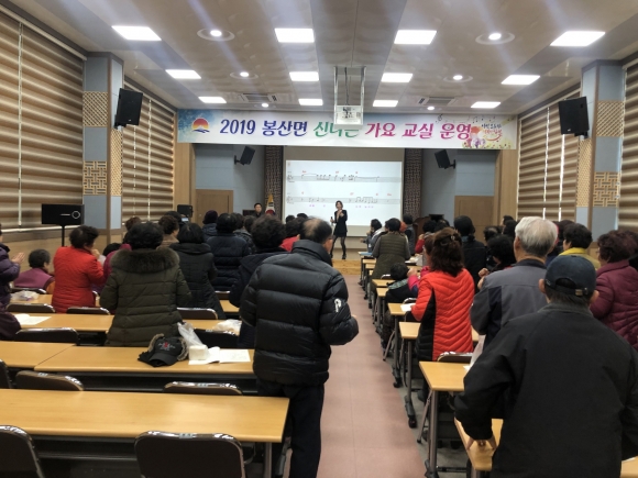 | 김천시 봉산면(면장 조수만)은 지난 1월 4일 오후2시에 면민 문화생활 향유를 위한 주민참여교실인 2019 봉산면 신나는 가요교실을 개강했다.