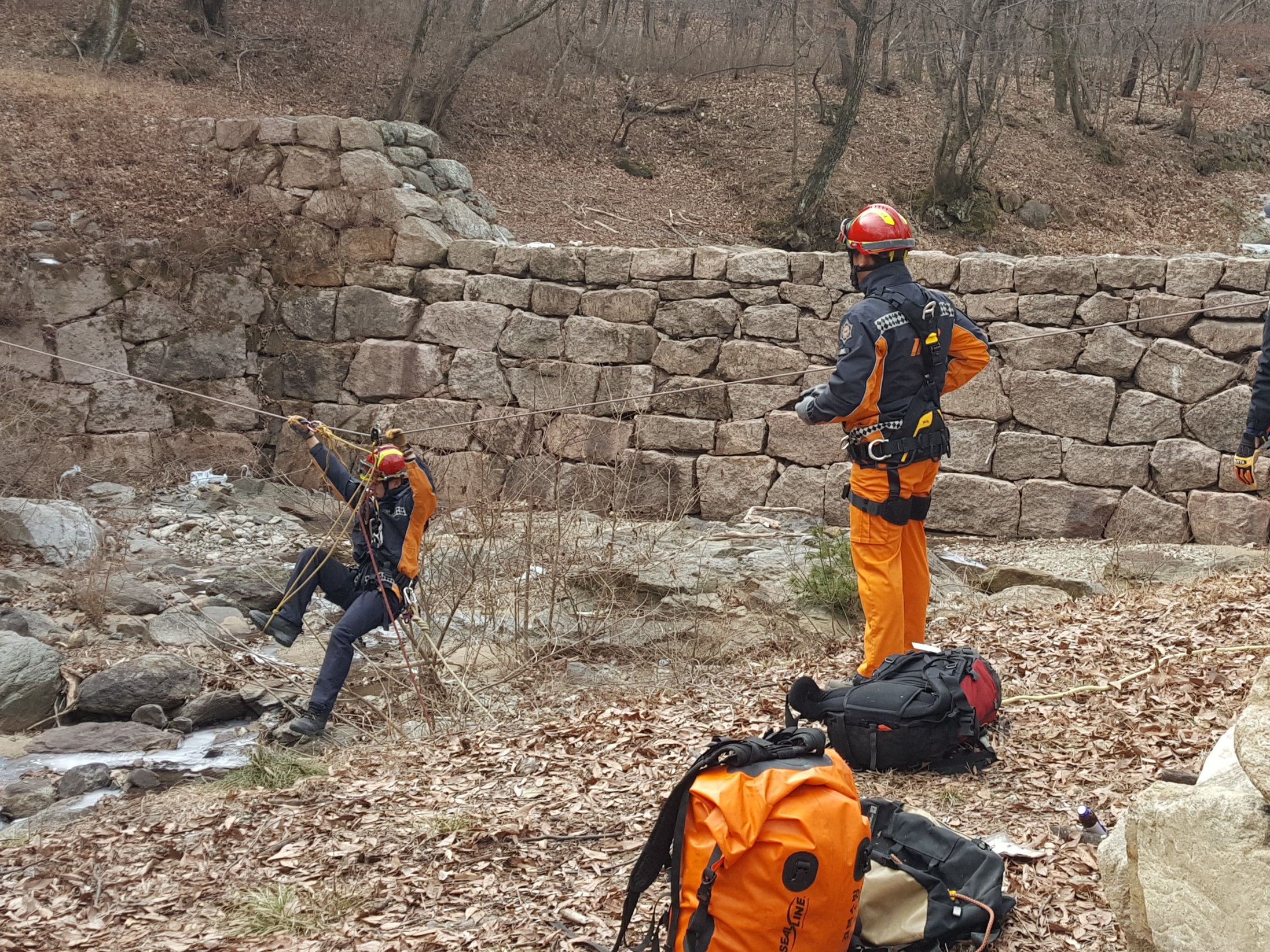 추락사고 대비 계곡구조 및 로프매듭법 중점 훈련