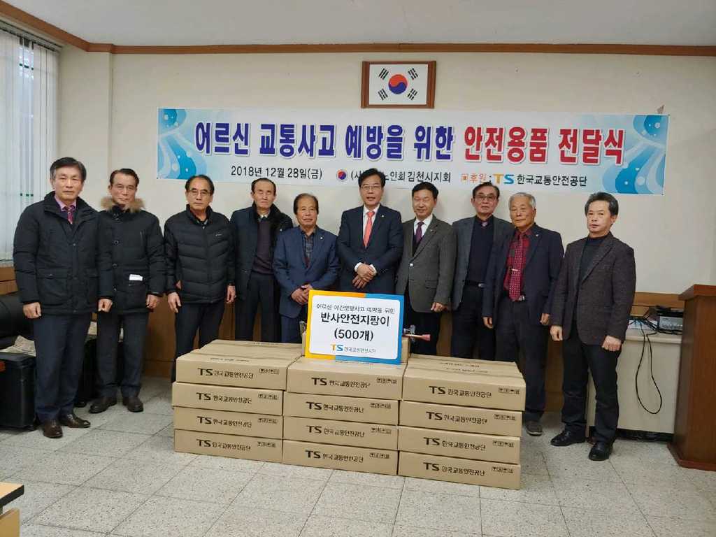 | 매일매일이 추워지는 지난 12월 28일 한국교통안전공단에서 겨울철 어르신들의 안전을 위해 ‘반사 안전지팡이’ 500개를 대한노인회 김천시지회에 기증하여 훈훈함을 전해주고 있다.