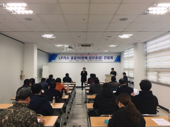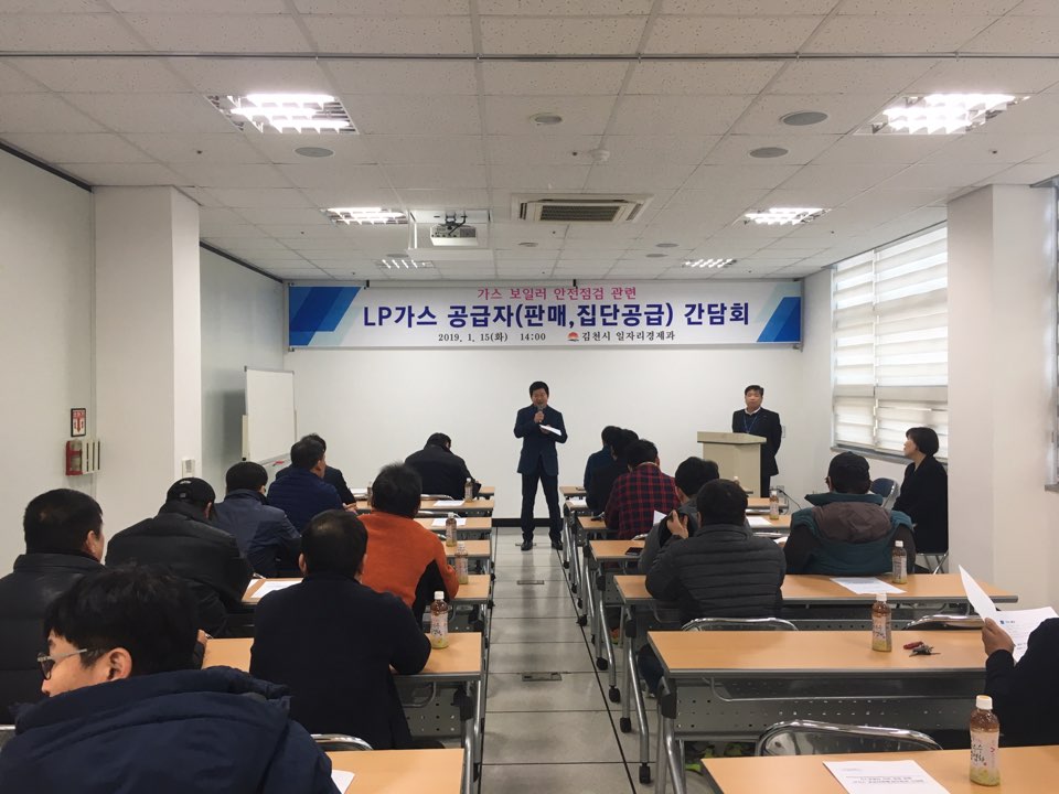 | 김천시(시장 김충섭)에서는 1월 15일 관내 LP가스 공급자(판매사업자, 집단공급사업자)들과 가정용 LP가스보일러 일제 점검을 위한 간담회를 근로자복지공단에서 개최했다.