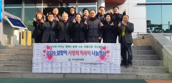사랑의 떡국떡 나눔행사는 매년 자산동번영회에서 주관하는 설맞이행사로 관내 주민모두가 따뜻한 새해를 보낼 수 있도록 바라는 마음으로 2013년부터 매년 정기적으로 개최하는 행사이며, 올해에도 어김없이 이웃사랑 나눔을 실천한 것이어서 더 큰 의미를 담고 있다.