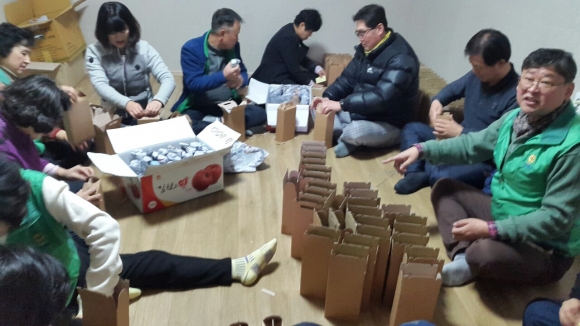 | 민족 최대의 명절 설을 앞두고 평화남산동 새마을협의회(협의회장 신광식, 부녀회장 김이경) 회원 30여명은 19일 새마을지도자협의회 회의실에 모여 참기름 포장을 위한 박스 조립 등 판매를 위한 준비를 하였다.