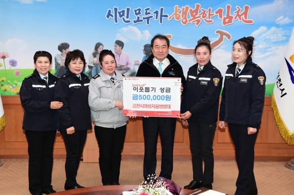 | 김천시여성자율방범대는 지난 21일 설을 맞이해 어려운 이웃을 돕기 위해 성금 50만원을 김천시에 기탁했다.