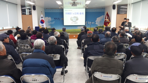 김상환 노인회장을 비롯하여, 도규익 지례면장, 이명기 김천시의원, 박판수 경북도의원, 각 경로당 회장, 총무 등 60여명이 참석한 정기총회에서는 2018년도 수입‧지출에 대한 결산보고, 경로당 임원단 선출 등을 실시해 최영오 노인회 총무가 지례면 신임 노인회장으로 선출되었다.